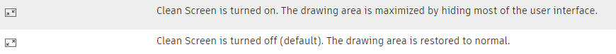 The Clean Screen feature maximizes the drawing area by hiding the ribbon, toolbars, and palettes.
